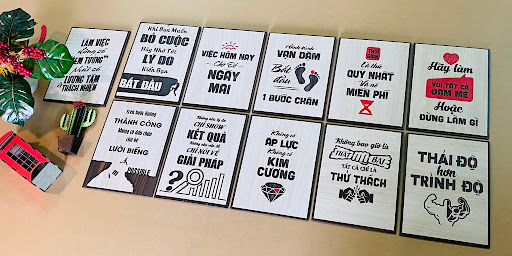 Tạo điểm nhấn tốt cho không gian căn phòng, nơi làm việc với màu sắc và các kiểu chữ được thiết kế trang nhã.